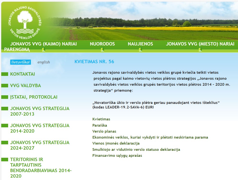 Jonavos rajono savivaldybės vietos veiklos grupė kviečia teikti paraiškas pagal šias priemonę „Novatoriška ūkio ir verslo plėtra geriau panaudojant vietos išteklius“ (kodas LEADER-19.2-SAVA-6) EURI (Kvietimas Nr. 56): Daugiau informacijos čia.