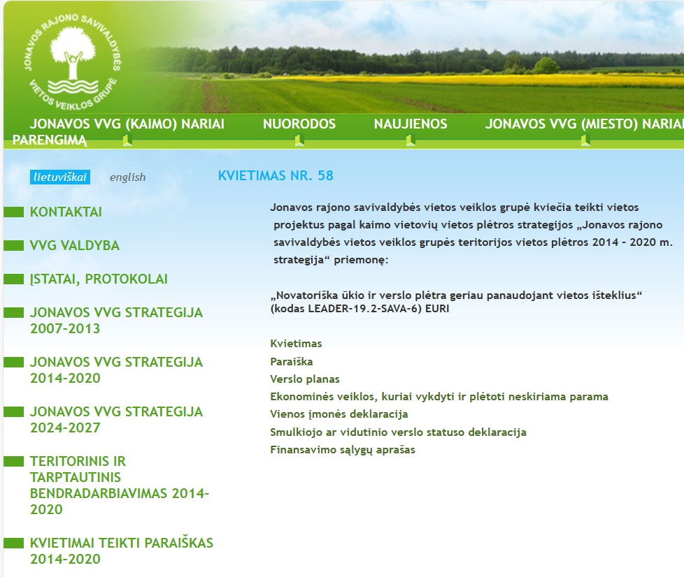 Jonavos rajono savivaldybės vietos veiklos grupė kviečia teikti paraiškas pagal šias priemonę „Novatoriška ūkio ir verslo plėtra geriau panaudojant vietos išteklius“ (kodas LEADER-19.2-SAVA-6) EURI (Kvietimas Nr. 58): Daugiau informacijos čia.
